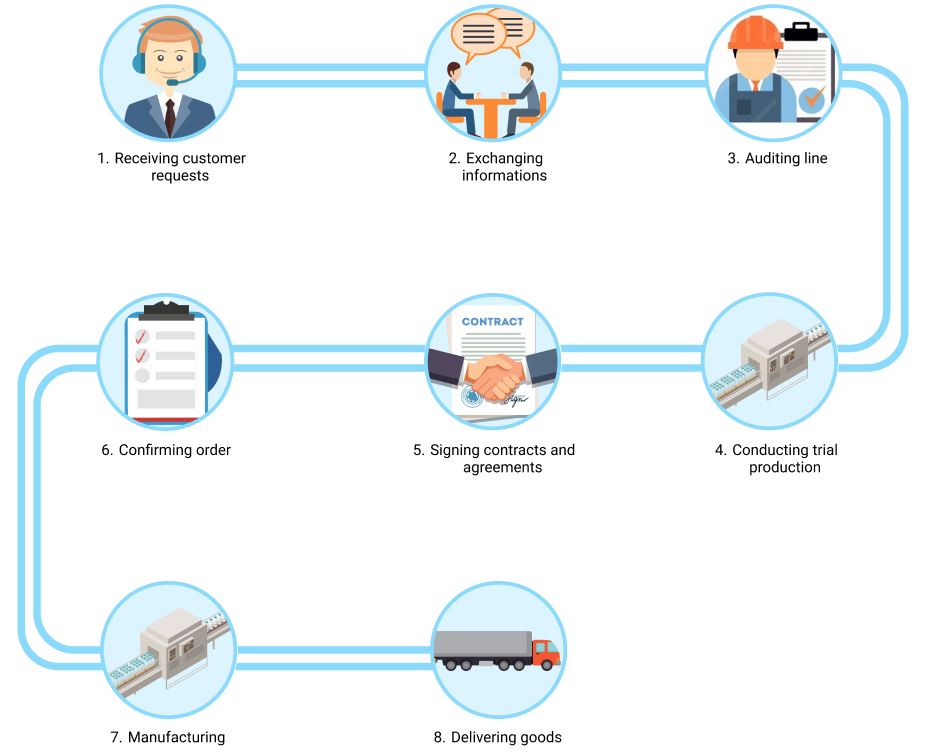 To be able to cooperate easily, quickly and conveniently, the following is BIDRICO's working process with customers and partners.