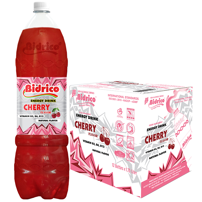 Flavors of Bidrico energy drink: Cherry, Lemon mint, Mixed fruit, Rhodomyrtus tomentosa, Grape, Strawberry.