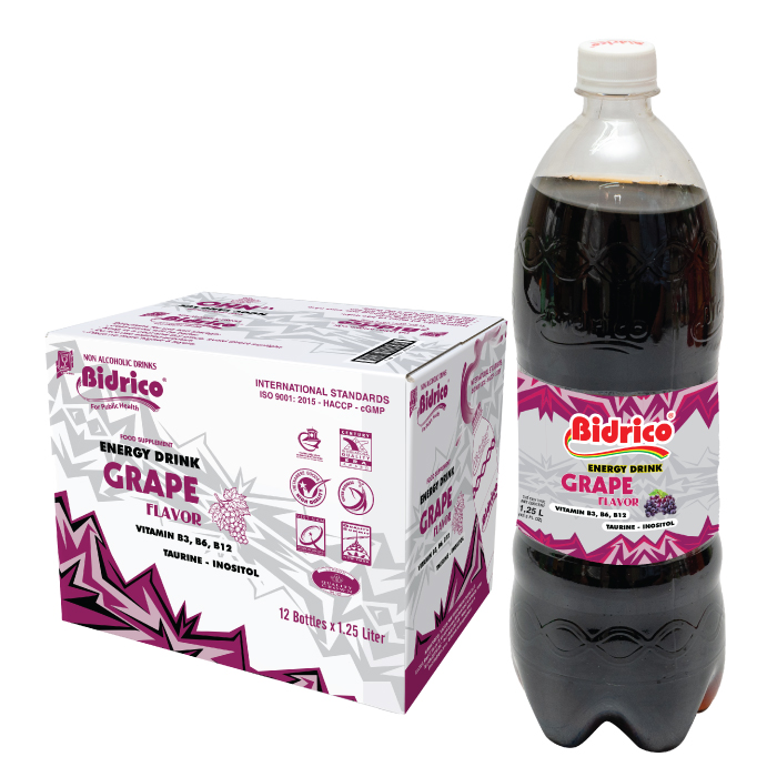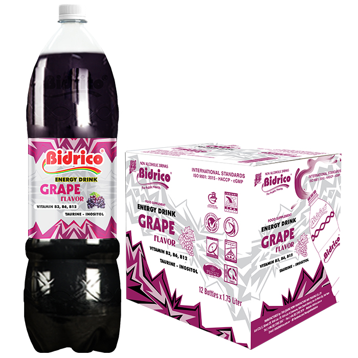 ContactBidrico energy drink grape flavor 1.25l bottle is the perfect choice to quickly replenish energy. The combination of juicy, sweet, slightly sour grape with ingredients such as vitamins B3, B6, B12, taurine help to keep the mind alert, restore physical strength when tired or needing deep concentration.