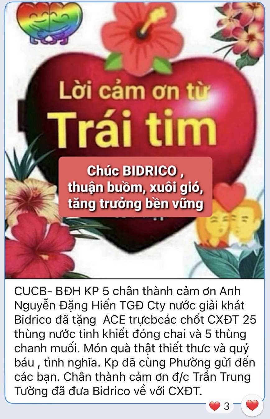 Ngày 13/11/2017, Chủ tịch nước Trần Đại Quang gặp các nhà tài trợ APEC 2017 để cảm ơn những đóng góp tích cực cho hội nghị APEC thành công và ghi dấu ấn đẹp với bạn bè các nước trong khu vực Thái Bình Dương về dự hội nghị. Bidrico là nước uống chính thức của...